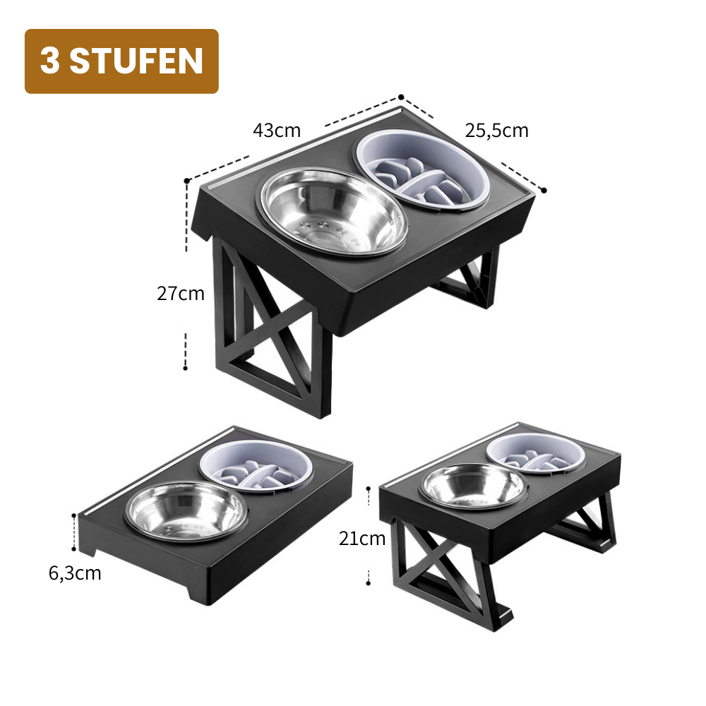 Drei verschiedene Höhen sorgen für eine optimale Fressposition – ideal für kleine Fellnasen ebenso wie für größere Vierbeiner.