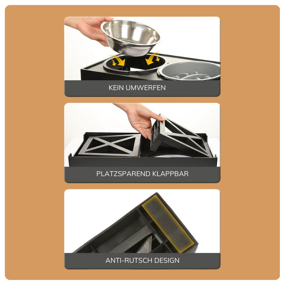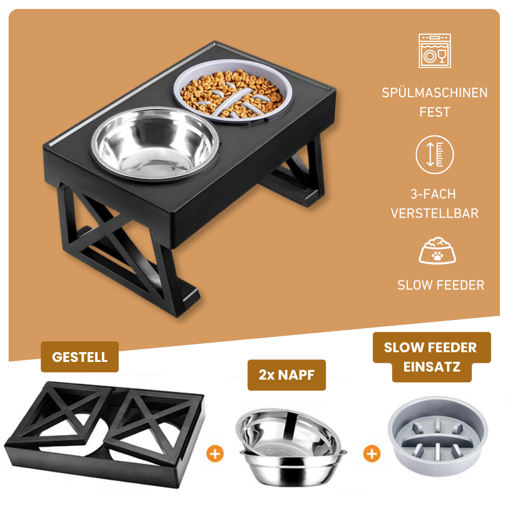 Dein Hund schlingt sein Futter viel zu hastig oder muss sich tief bücken, um an seinen Napf zu kommen? Das kann auf Dauer nicht nur den Magen reizen, sondern auch Nacken, Rücken und Gelenke belasten.